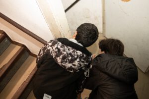 Kinder und Jugendliche des Nachbarschaftstreffs Mittendrin in der Fischsiedlung, welcher zur Stadtteil-Schule Dortmund e.V. gehört, haben sich mit ihrer Kamera auf die Suche nach Orten gemacht, an denen Unsicherheit spürbar wird. Abgelegene Wege, enge Passagen und wenig Licht wurden zum Ausgangspunkt für fotografische Erkundungen. Ausgehend von diesen Aufnahmen entwickelten sie Collagen und entwarfen Visionen davon, wie sich diese Räume verändern könnten. So entstanden persönliche Zukunftsbilder, in denen aus angstbesetzten Plätzen neue, selbstbestimmte Stadträume werden.
